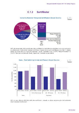 2017 yılı sonu itibarıyla OKS’deki dahil olan sertifikaların, kamuda ve çalışan sayılarına göre özel sektördeki